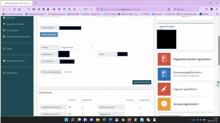 Ezután a lap legalján, a Számlák, Jóváhagyásra váró fegyver vásárlási kérelmek, Évközi minősítek, felirat alatti részbe bekerültek az Átigazolások – KI, valamint az Átigazolások – BE feliratú részek. Amennyiben érkezik egy másik klubból az adott klubba történő átigazolásra irányuló Átigazolási kérelem, akkor azok itt, az Átigazolások – BE felirat alatt lesznek felsorolva egymás alatt.