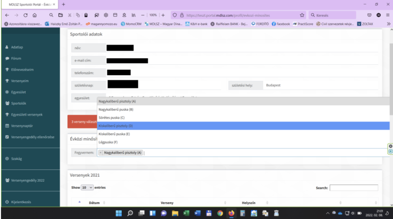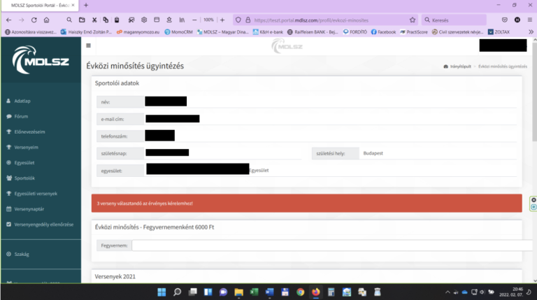 -A kérelem megnyitásakor a sportoló adatai betöltődnek a rendszerből, a versenyzőnek annyi dolga van, hogy azokat ellenőrzi.