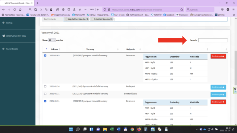 – Abban az esetben, ha a kiválasztási folyamattal végzett és nincs több olyan fegyvernem amire minősítést szeretne kérni, akkor ki kell választani a hivatkozni kívánt versenyeket.